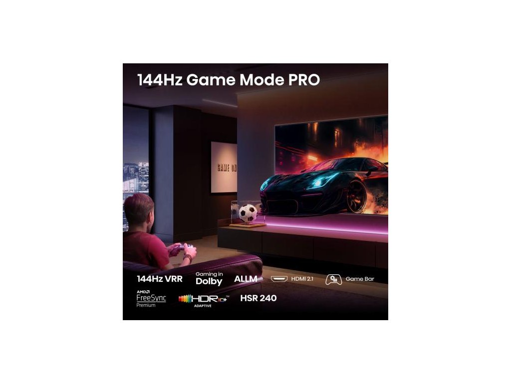 Odemkněte svůj herní potenciál s 144Hz Game Mode PRO s integrovaným herním panelem, rozlučte se se zpožděním a užijte si hraní bez trhání obrazu.